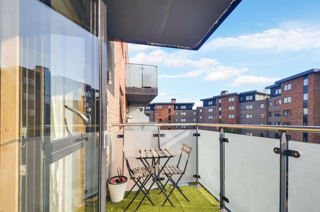 Enjoy year-round comfort with underfloor heating throughout, and a sleek modern kitchen fitted with integrated appliances. Both bedrooms are generously sized, while the two bathrooms, including an en-suite to the master, are finished to a high standard. A private balcony provides an ideal space for morning coffee or evening relaxation, and residents also benefit from access to a landscaped communal garden and secure bike storage.