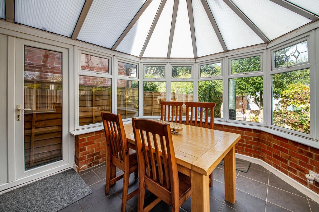 Accommodation comprises; convenient entrance porch that leads to the entrance hall and a 16ft front aspect living room with a feature fireplace. The kitchen to the rear has been opened into the part brick conservatory overlooking the secluded rear garden, currently utilised as a dining room. The first floor offers two double bedrooms and a re-fitted family bathroom.