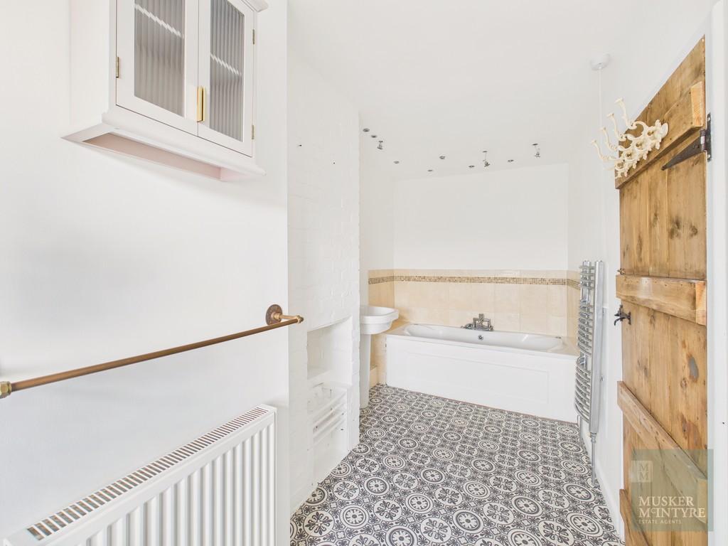 Stairs rise to the first floor landing from the kitchen/dining room, with windows to the side aspect, loft access and cupboard housing the hot water tank. The spacious master bedroom is double aspect with built-in wardrobes, open fireplace and door into the en-suite comprising bath with shower over and glazed screen, WC, pedestal wash basin and heated towel rail. There are three further double bedrooms and well appointed family bathroom comprising fully tiled shower cubicle, Jacuzzi bath with shower attachment, WC, pedestal wash basin and heated towel rail.