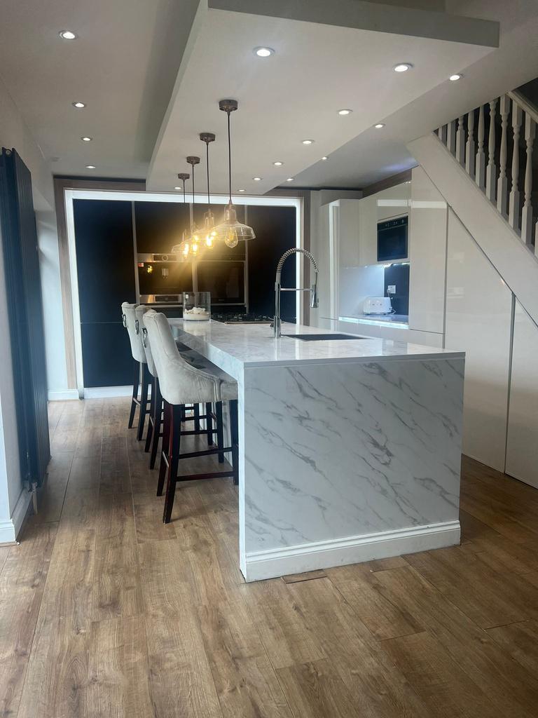 The spacious kitchen is beautifully designed with a central island, perfect for cooking with ample space. The property comes fully furnished, ready for you to move in straight away.