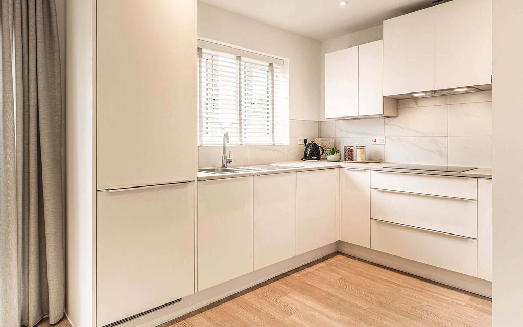 - Integrated oven, induction hob, fridge/freezer & dishwasher