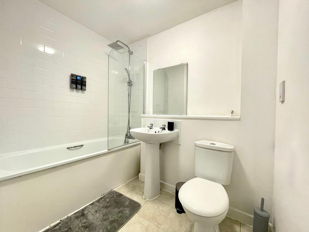 The accommodation comprises an entrance hall leading to a spacious open-plan sitting and dining area, ideal for modern living. The separate kitchen provides ample workspace and fitted units, while the double bedroom benefits from a built-in wardrobe. Completing the layout is a contemporary bathroom with a shower-over-bath setup.