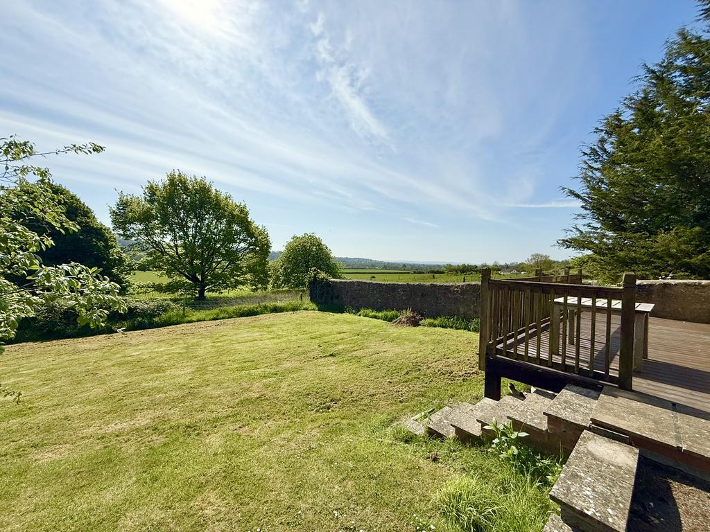 The garden is a standout feature, offering a generous outdoor space that perfectly complements the rural setting. A raised decking area provides the ideal spot for outdoor dining or relaxing, while the expansive lawn stretches out to reveal stunning, uninterrupted views across open countryside