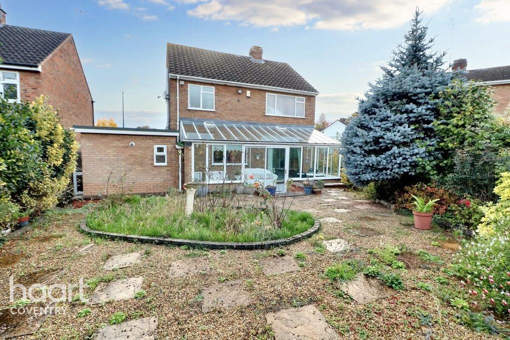 Outside is an enclosed rear garden, mainly laid to shingle. To the front is an expansive wrap around lawn and a driveway that leads to the garage.