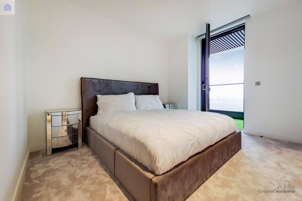 The property comprises of a very spacious dual aspect reception area with floor to ceiling windows leading to a wrap around terrace offering wonderful City and River Thames views. Luxury fitted kitchen with island and dining area. Two large double bedrooms, the master bedroom benefiting from a luxury en suite and access to the terrace and ample storage, guest bathroom with free standing bath and separate shower.