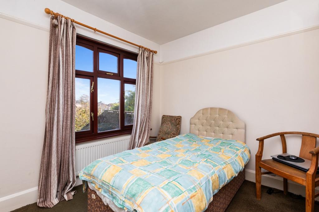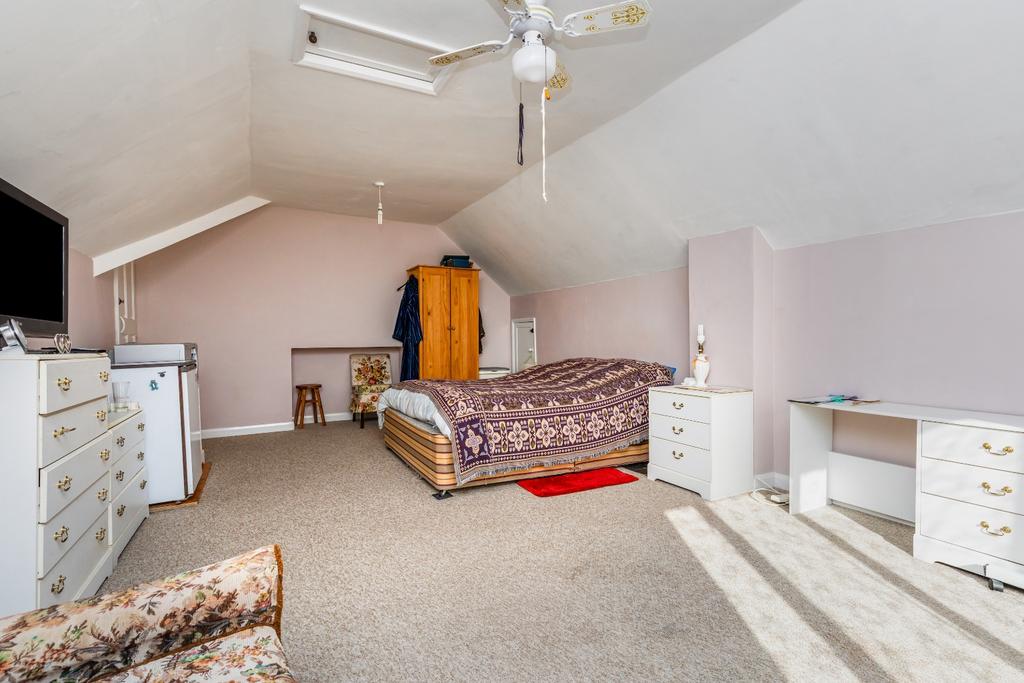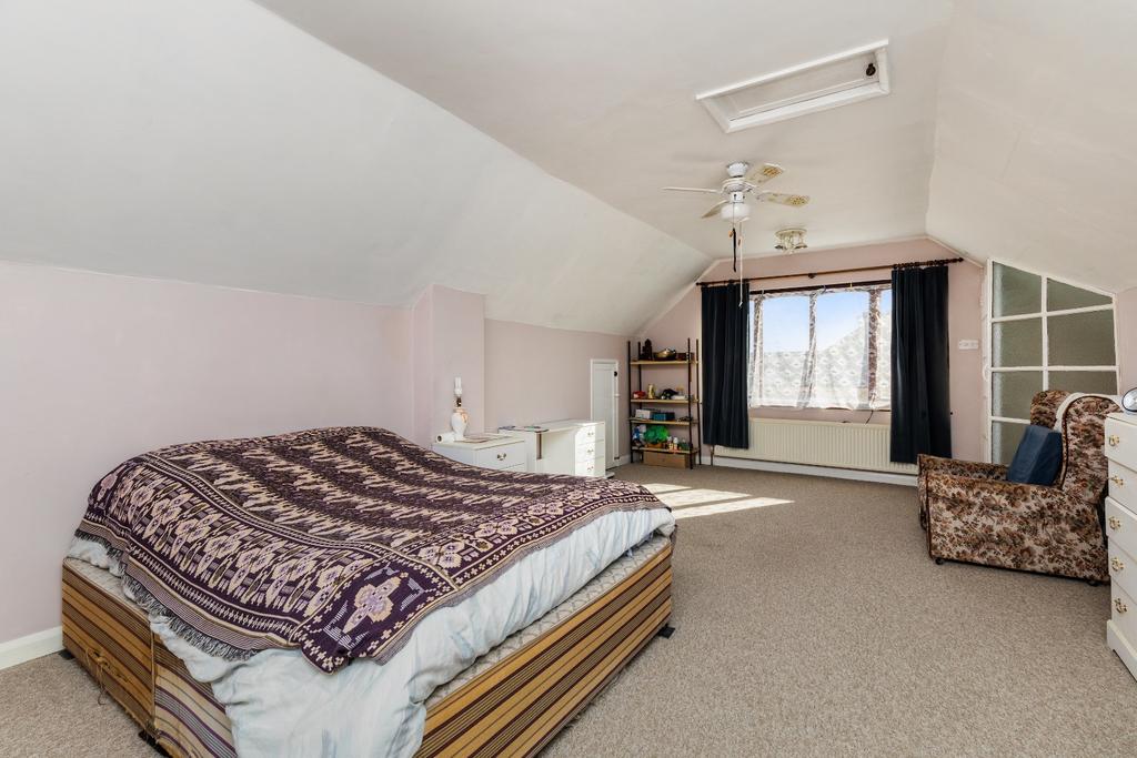 The accommodation is spread over three floors. The first floor has three good-sized bedrooms and a family bathroom, which could be updated. The second floor features a large fourth bedroom, offering a private space that could be a master bedroom, guest room, or a teenage retreat.