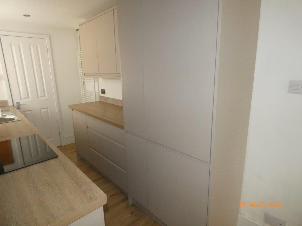Fitted with a range of pale laminate units and complimented by a wood block effect worktop and grey ceramic tile upstands and splash back to the hob. This delightful galley style kitchen boasts integral appliances which include fridge freezer, dishwasher, stainless steel sink, electric oven and four ring hob, extractor hood and there is also space and plumbing for a washing machine (not provided). There is a window looking to the side elevation and both the kitchen and second reception room have recess lighting.