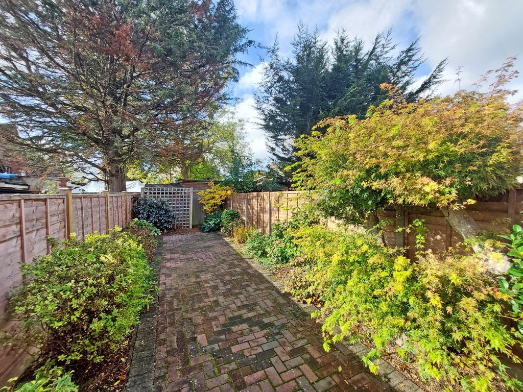 Outside, the property truly shines with its low maintenance paved rear garden, extending to approximately 45 ft. This private outdoor space is stocked with a variety of shrubs.Fenced boundaries ensure privacy, and a useful timber shed provides storage. The garden is set against a picturesque backdrop of mature trees. Further enhancing the convenience of this home is the residents' parking available in the front courtyard and a garage located in an adjacent block within the development.
