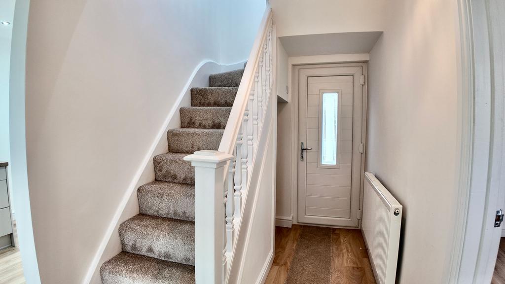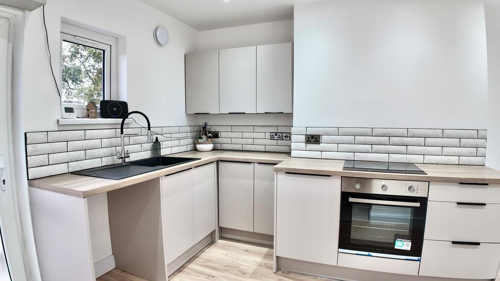 The newly fitted kitchen/diner boasting new appliances and ample storage space. Access to the rear garden makes al fresco dining a breeze, with a patio seating area perfect for enjoying your morning coffee or hosting summer barbeques. The generous lawned area provides plenty of space for outdoor activities, making it an ideal spot for both relaxation and entertainment.