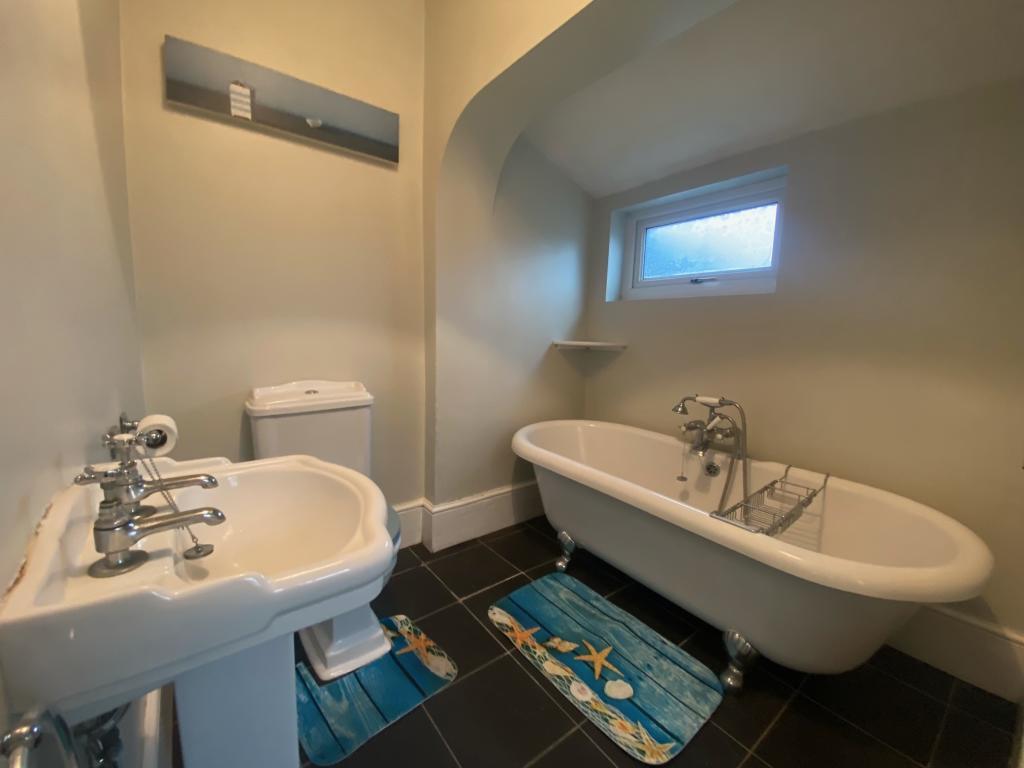 This property offers generous living space throughout, featuring two reception rooms, a modern fitted kitchen with white goods included, and a separate utility room for added convenience. Upstairs, there are three comfortable bedrooms and a bathroom. One of the bathrooms is downstairs (one with freestanding bath, toilet, sink) and the other is upstairs (with shower, toilet, sink)