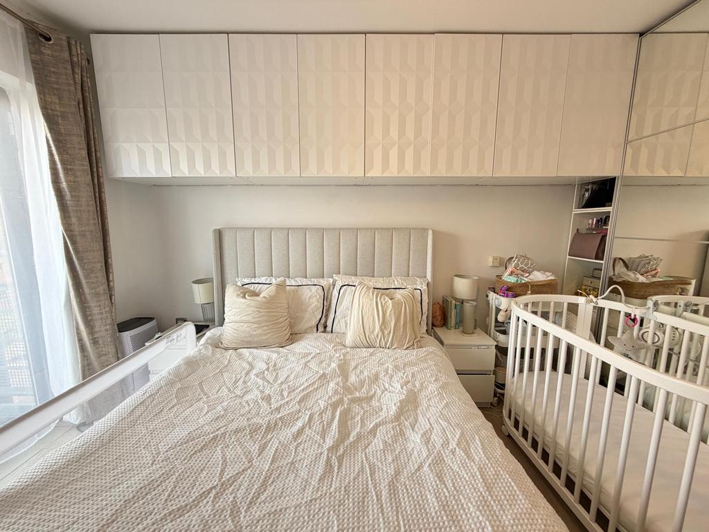 Bedroom 1 with a built in wardrobe overhead storage units and chest of drawers (and rug (3.2m x 3.7m)