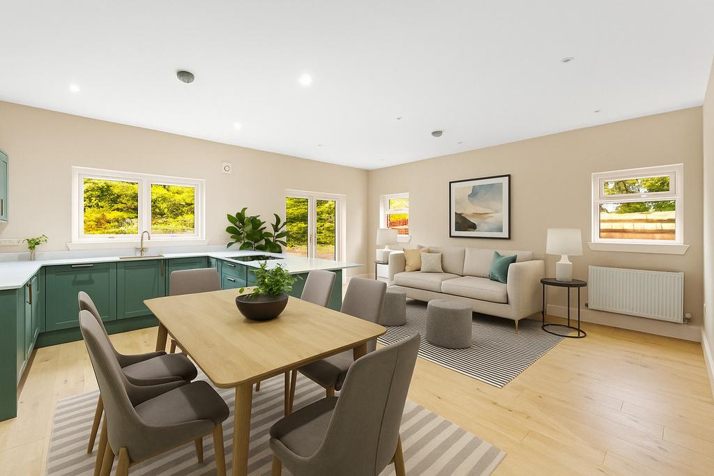At the heart of the property lies an open plan kitchen , living/ dining area, perfectly positioned to serve as a central gathering point between the living and sleeping areas. To one side, the expansive living room and kitchen creates a seamless space ideal for entertaining or relaxing. The kitchen is a true highlight, fitted with premium Bosch appliances, elegant quartz worktops, and quality fixtures and fittings, offering both style and functionality in equal measure. A practical utility room adjoins the kitchen, providing additional storage and laundry space.