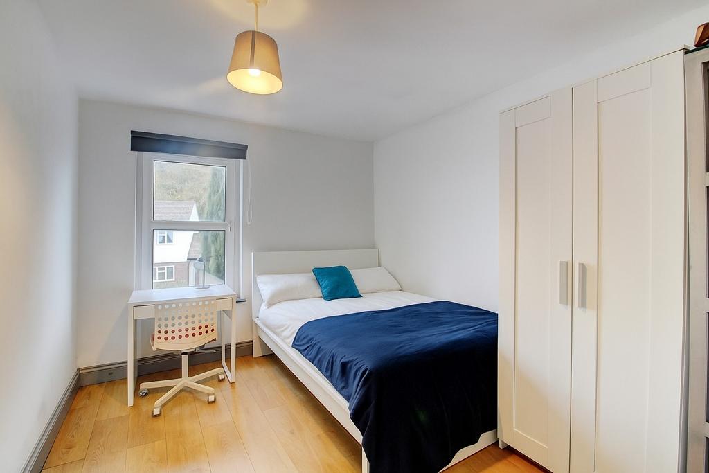 All five bedrooms are doubles and furnished. Offering plenty of space for study or rest. To the rear, there’s a private garden, perfect for outdoor dining or downtime in the warmer months.