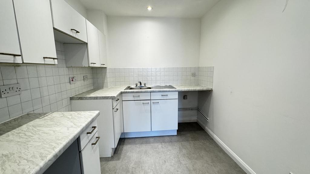 Fitted with a range of white fronted units, with laminate worktops and tiled splashbacks, cooker space, space and plumbing for washing machine space for tall fridge/freezer, new vinyl flooring.