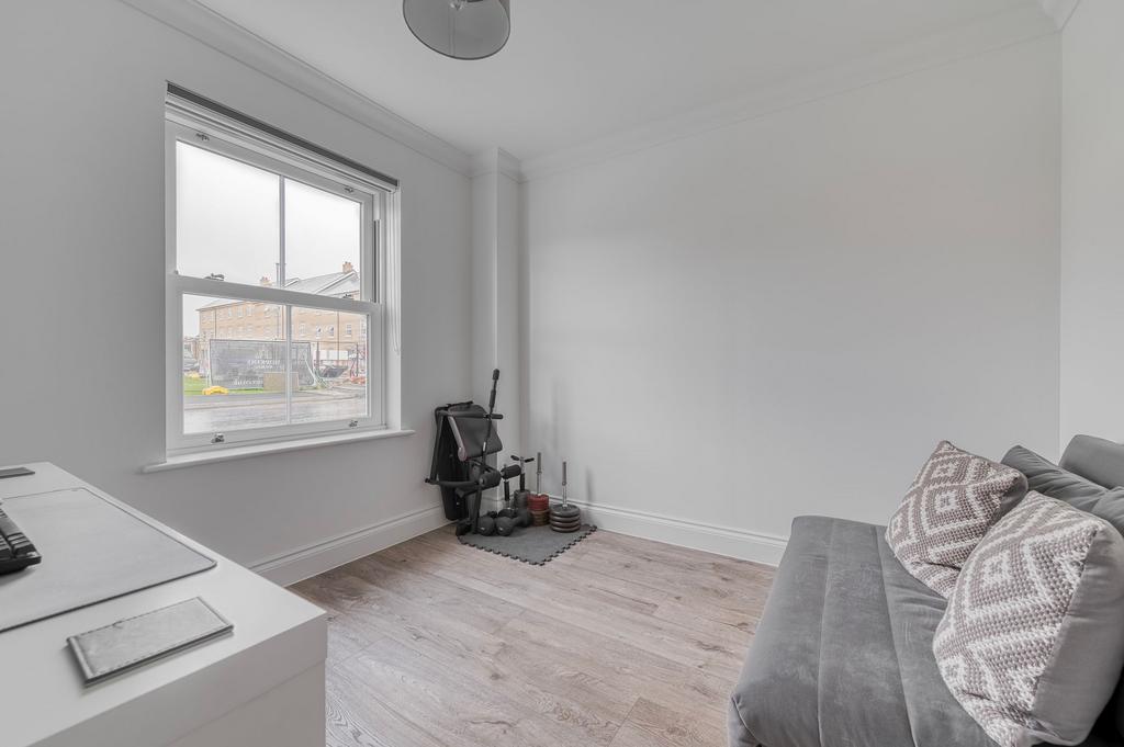 The top floor is dedicated to rest, offering three well-proportioned bedrooms that promise comfort and privacy. Two bedrooms benefit from built-in wardrobes, while the principal suite features its own private en-suite. A contemporary family bathroom completes this floor, showcasing sleek finishes and a calming atmosphere.