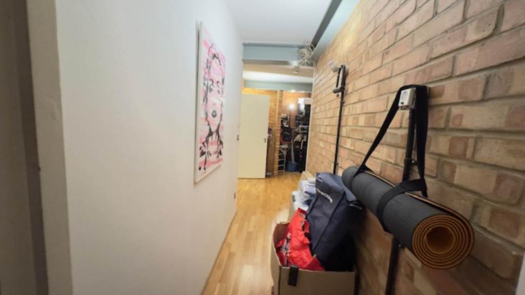 The lower level includes a spacious lobby with security entry phone access. Each of the three double bedrooms benefits from large double-glazed windows, wooden-style flooring, and exposed brick finishes, adding a touch of character throughout.