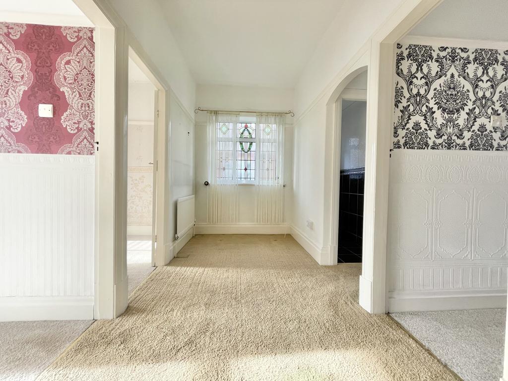 Spacious hallway with feature UPVC double glazed window to the side aspect, radiator and staircase leading to the first floor.