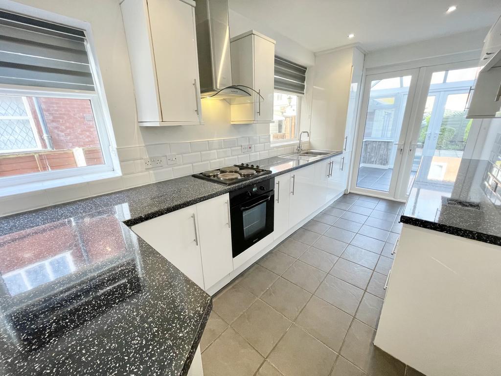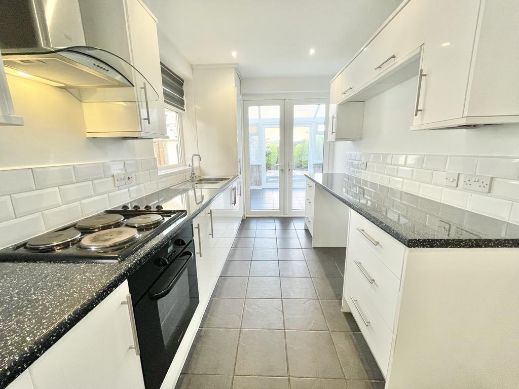 UPVC double glazed windows and double doors. Fitted kitchen with a range of wall and base units with commentary work surfaces. Briefly comprising: Integrated electric oven, four ring electric hob with extractor fan over, integrated fridge and freezer, sink with mixer tap, tiled splashback and cupboard housing Worcester combi boiler.