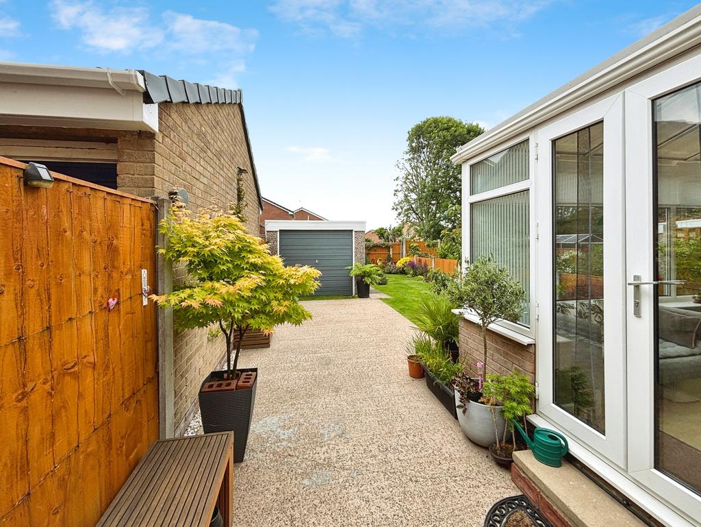 Stepping outside, the property benefits from a large garage and ample parking space, ensuring convenience at its best. The garden, lovingly maintained, is perfect for those summer evening gatherings or a tranquil morning coffee.