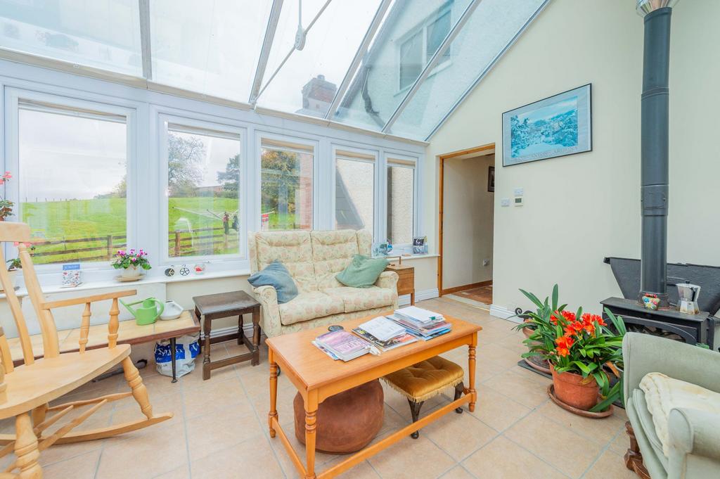 The ground floor layout is designed for flexibility and comfortable living. Beyond the lounge, a central hall provides a glazed door access to the rear garden and leads to a practical shower room with a WC, vanity basin, and walk-in shower cubicle. Also off this hall is a versatile study/bedroom, complete with a built-in storage cupboard and a window overlooking the land. With the shower room directly opposite, this space is ideal for multi-generational living or as a practical, ground-floor bedroom option. Completing the downstairs accommodation is the spacious conservatory, which truly is an all-season room. It features its own log-burning stove and comforting electric underfloor heating, ensuring it remains a warm and welcoming space year-round.