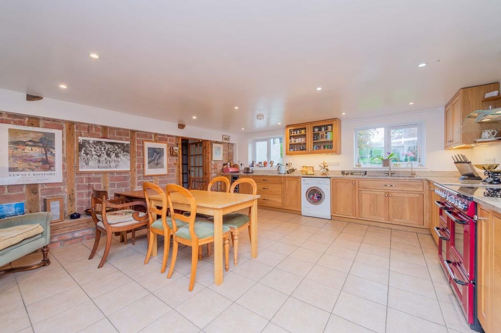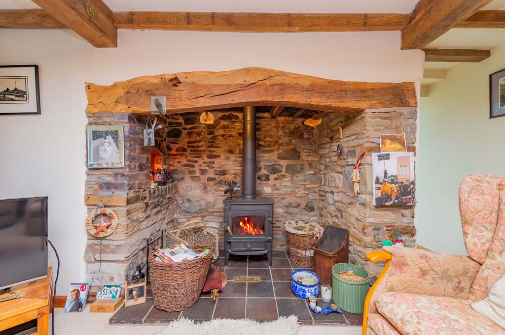 Step inside and be instantly transported by the cottage's rich character. The central porch leads directly into the charming lounge, where a breathtaking Inglenook fireplace takes centre stage. This magnificent feature showcases rough-hewn exposed stone, an ancient oak mantel, and the focal point of a powerful Clearview wood-burning stove. Tucked within the Inglenook is a piece of living history: an original bread oven, adding a captivating, historic charm. The entire room is a symphony of natural materials, with exposed beams adorning both the ceiling and walls. Moving into the kitchen/dining room, the building's heritage is highlighted by a section of the original external cottage wall being left exposed, revealing the stunning interplay of brick and timber beams.