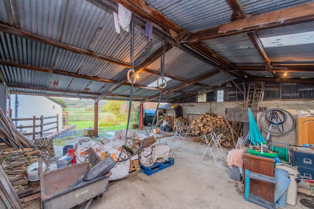 The essential infrastructure includes highly practical outbuildings: a large Dutch barn and an equally substantial L-shaped barn. The latter is ingeniously divided, offering one half as an excellent, dry storage space or workshop, and the larger section featuring a loose box, creating an ideal, flexible space for horses or livestock.