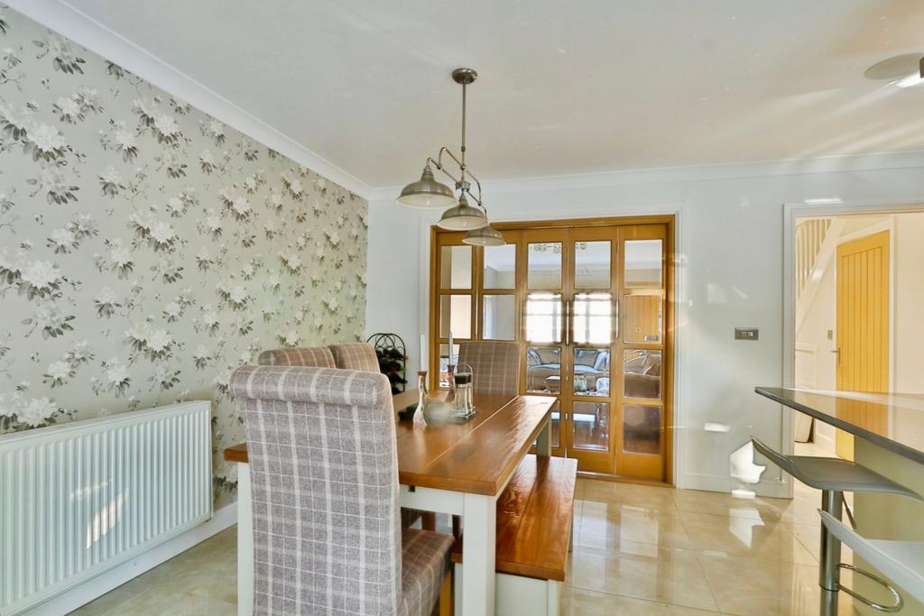 This delightful property is a fantastic opportunity for families looking for space, style, and convenience. The entrance welcomes you into a generous HALLWAY complete with a WC, leading into a cosy lounge, perfect for family gatherings or quiet evenings in. With the option to separate the lounge from the dining kitchen via the glazed OAK BI-FOLD DOORS, you can easily create a sociable environment or a more intimate setting.