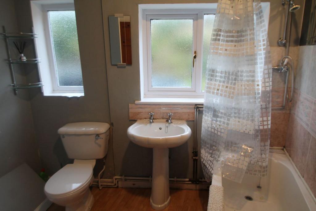 Bathroom - Window to rear. Radiator. Bath with shower over. W.C, Wash hand basin. Part tiled walls.