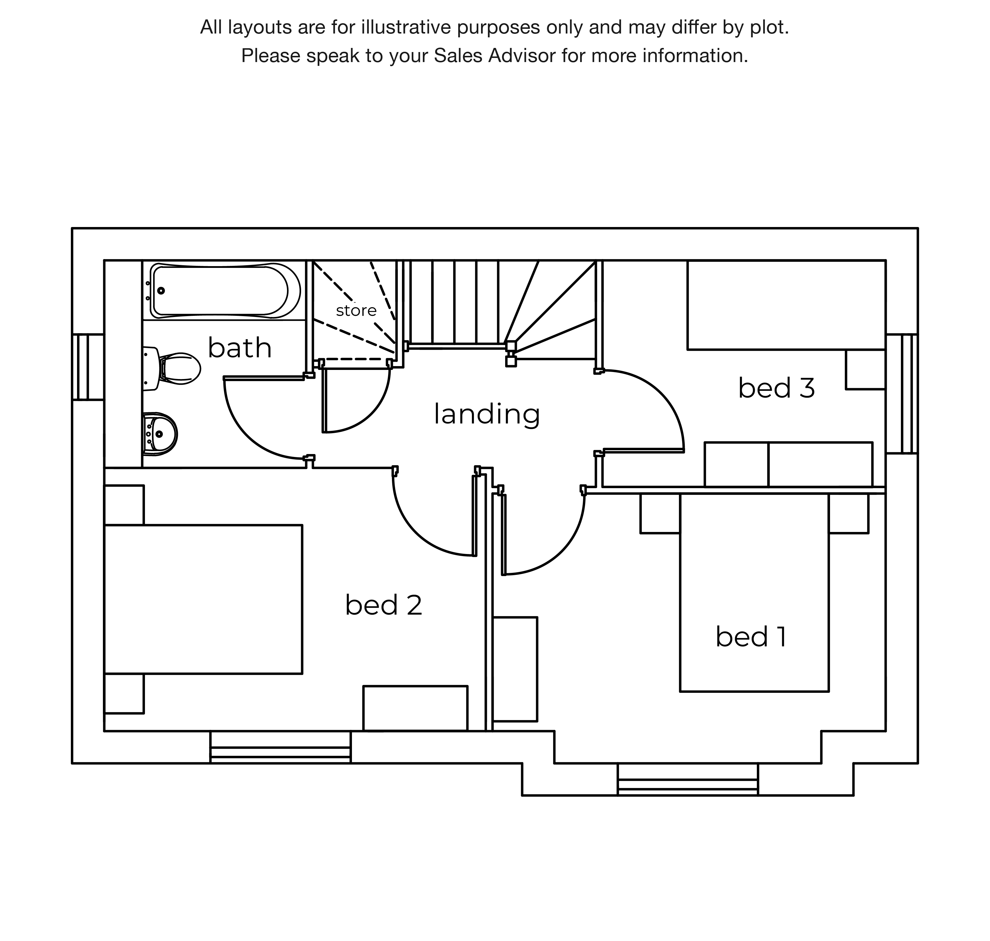 Upstairs, you’ll find three well-proportioned bedrooms arranged around a central landing. The main bedroom features a generous footprint with an attractive bay – bringing in natural light and a touch of character. Bedroom two is also a double, ideal for older children, guests, or even a shared space. The third bedroom adds flexibility, making an excellent nursery, home office or creative nook. A modern family bathroom serves all rooms and a discreet storage cupboard off the landing helps keep everyday essentials neatly tucked away.