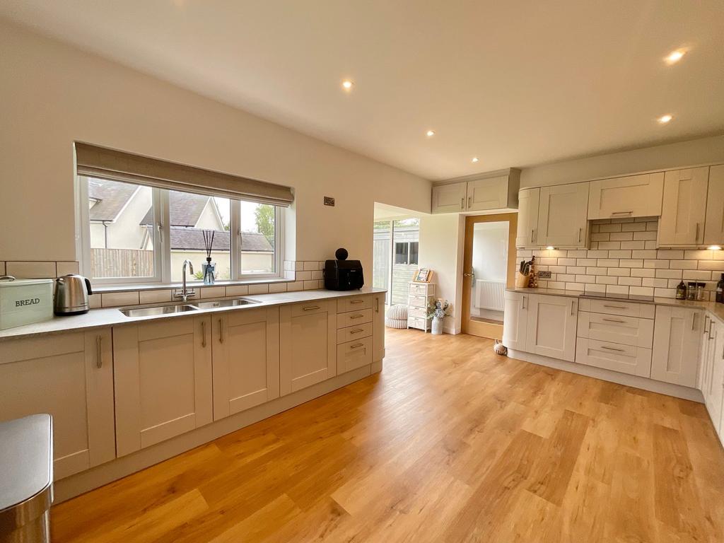 From the moment you enter, the home’s light and airy feel creates a welcoming atmosphere. The generously sized living room benefits from dual-aspect windows, including a wide bay window that floods the space with natural light. A log burner adds both warmth and character, making this the perfect place to relax in comfort or entertain guests all year round.