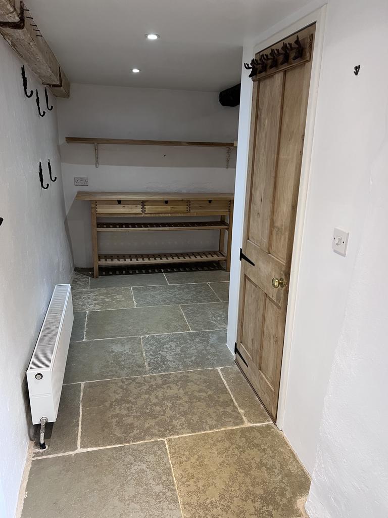 Boot Room / Cloak Room: 1.5m x 4.2m: Exposed beams, stone floor and under floor heating and radiator
