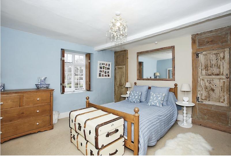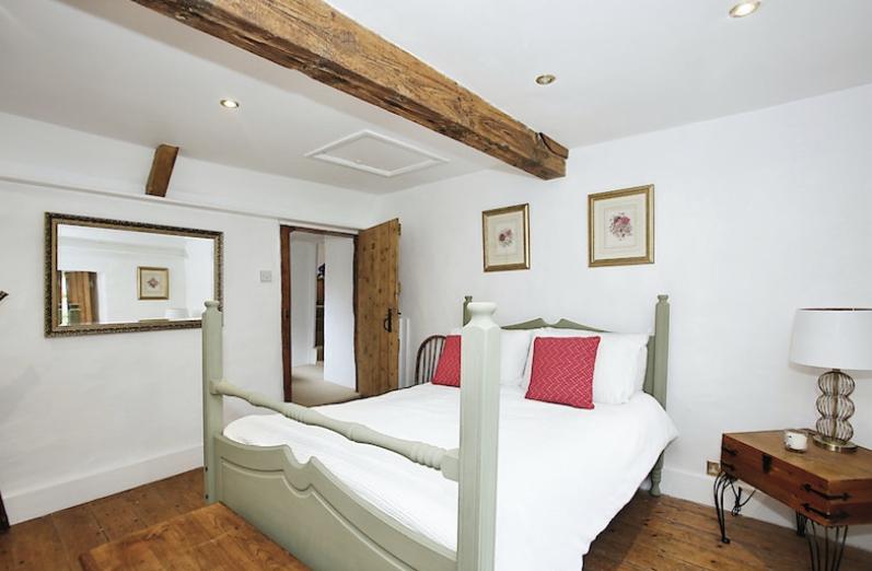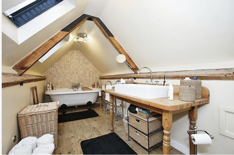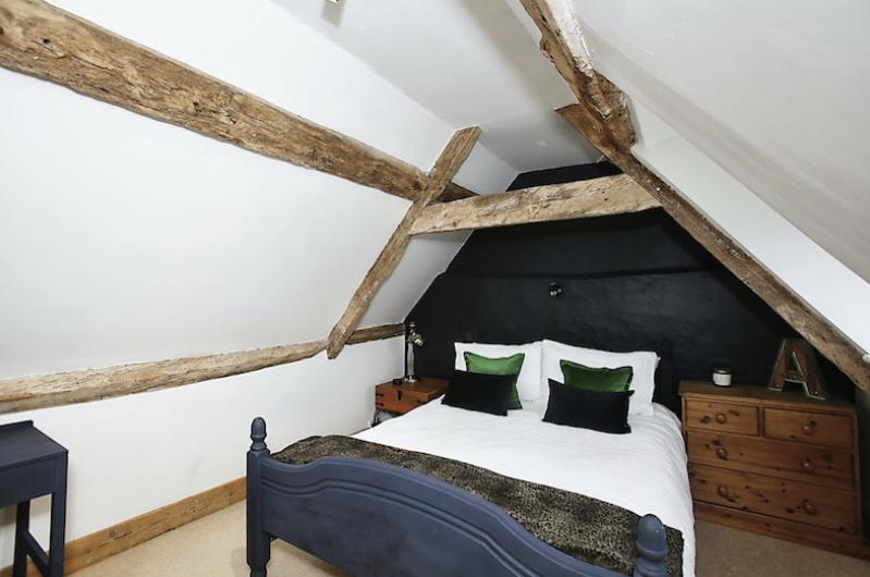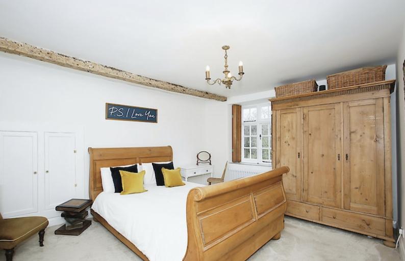 Bedroom 2: 4.5m x 4m with exposed beam, wooden shutters on windows and radiator. Large ensuite bathroom with double sink, WC, rolled top bath & exposed beams.