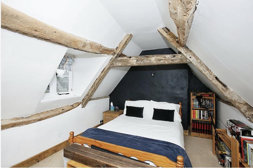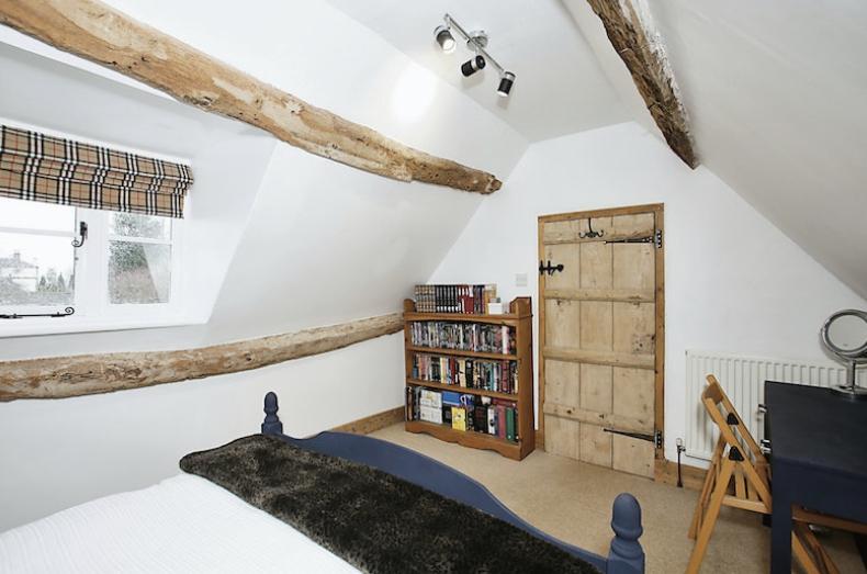 Bedroom 5: 4.1m x 3m: Exposed roof timbers and radiator