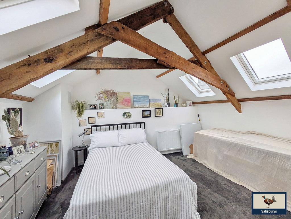 Bedroom Two: (3.63m x 4.22m/11'11" x 13'10") Bedroom Two is a generous double bedroom with the benefit of a vaulted ceiling with exposed truss beams and four skylight windows.