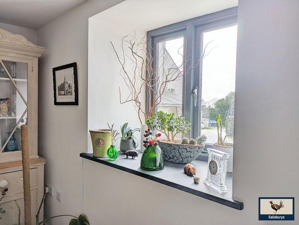 The main Lounge area has the focal point of a Contura corner log burner with slate hearth and a deep recessed window with slate sill. The Kitchen area has the benefit of a deep recessed window with slate window sill that overlooks the front courtyard and is fitted with a range of Shaker style base and wall units. There is a single electric oven, hob and overhead extractor with a tiled splashback, composite 1.5 sink and oak effect flooring that runs throughout the whole downstairs living area. There is a convenient downstairs cloakroom with w,c and handbasin which also provides plumbing for a washing machine.