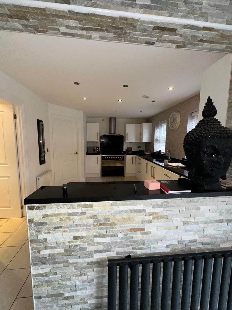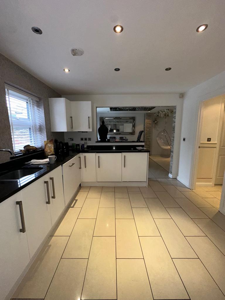A beautiful open plan kitchen - dining area, large double french doors leading into the low maintenance back garden with hot tub and patio area.
