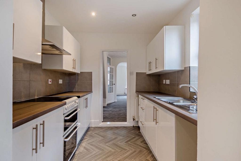 The spacious ground floor welcomes you with an inviting open-plan lounge and dining area, offering plenty of room to relax and entertain. The modern kitchen features half-tiled walls, oak-style countertops, and ample storage, creating a stylish and practical space for home cooking. Completing the ground floor is a useful utility area and a family bathroom.