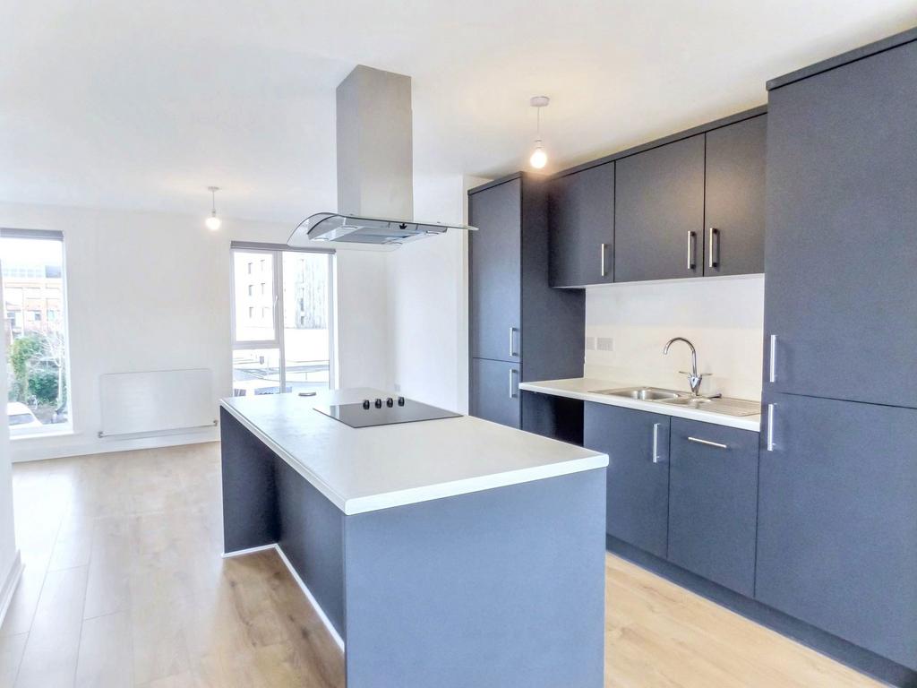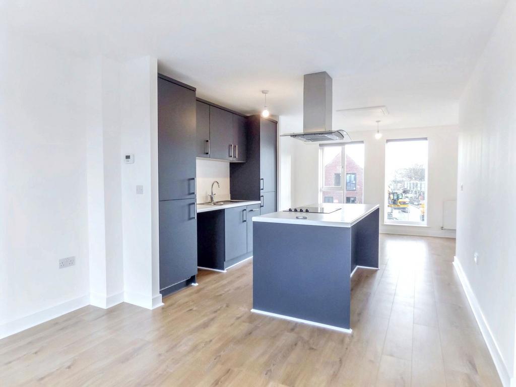 Set over two floors, the home offers modern living accommodation with an wonderful dual aspect first floor living/dining room and kitchen. The space is open plan and the dual aspect allows an abundance of natural light to flood into the space, making it feel light and airy. The kitchen comes with integrated appliances and has a central preparation isle.