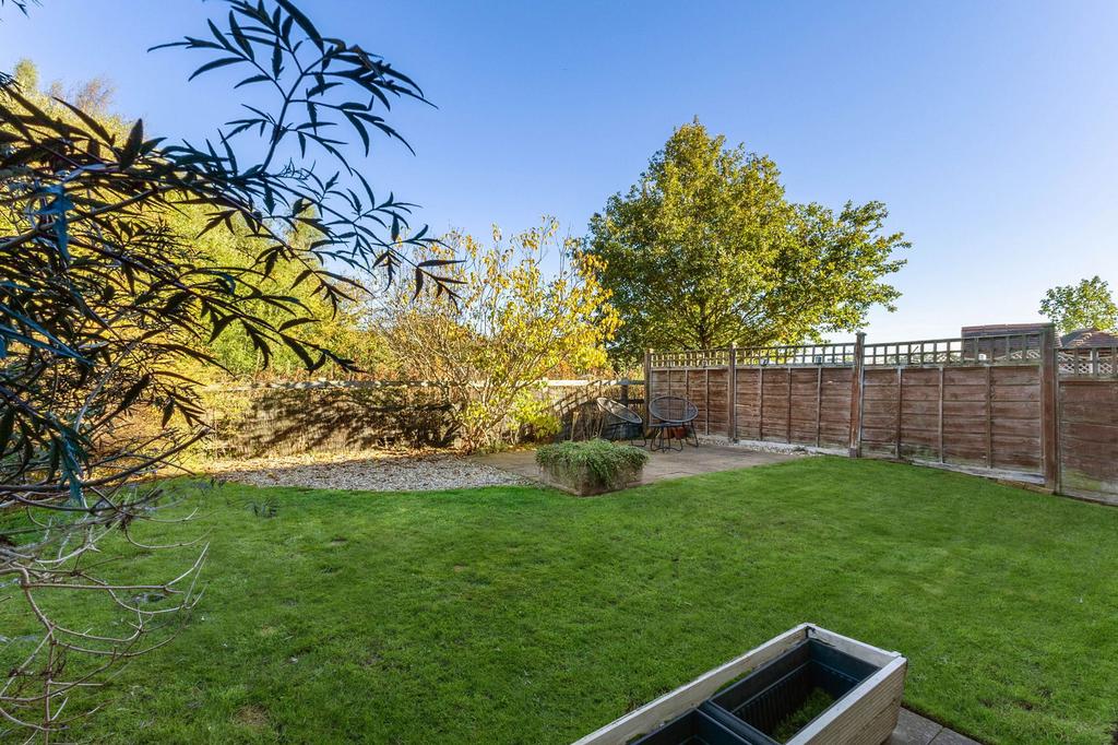 To the rear, a private enclosed garden features a patio area perfect for summer dining and a lawn surrounded by fencing, offering a safe and enjoyable outdoor space for the family, with gorgeous views on to the rear fields and green land.