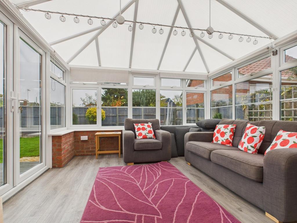 Part brick and uPVC double glazed construction with vaulted polycarbonate roofing and central ceiling fan, laminate style flooring, uPVC double glazed doors to rear garden.