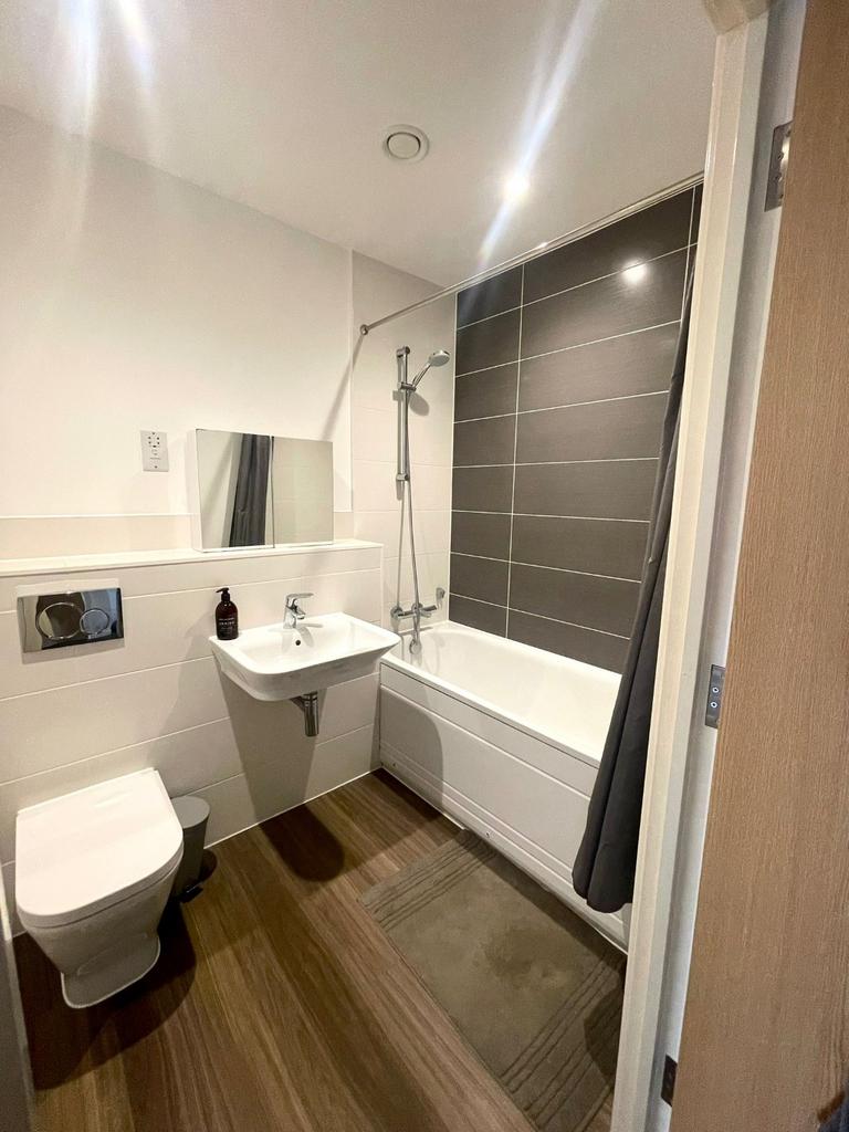 The apartment features two well-proportioned bedrooms, each designed with comfort and style in mind. The master bedroom benefits from a private en-suite shower room finished to a high modern standard, while the second double bedroom offers flexible space that can be used as a guest room, home office, or children’s bedroom. A beautifully appointed main bathroom complements the accommodation, featuring a modern suite and tasteful décor throughout.