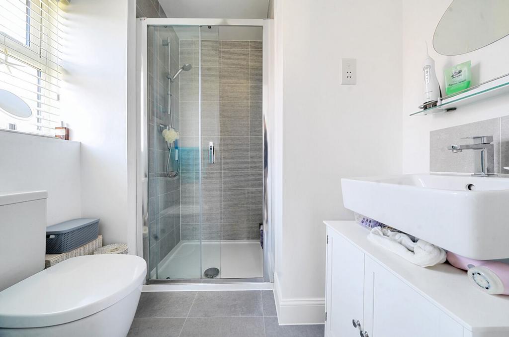 Upstairs, the property offers three well-proportioned bedrooms, including a comfortable main bedroom with space for wardrobes, a modern family bathroom, and an additional shower room.