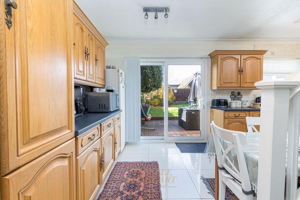 To the front of the house is a formal dining room, which has been formed as part of a garage conversion providing this home with further living space and versatility. In addition, the wall mounted condenser boiler is concealed within a cupboard.
