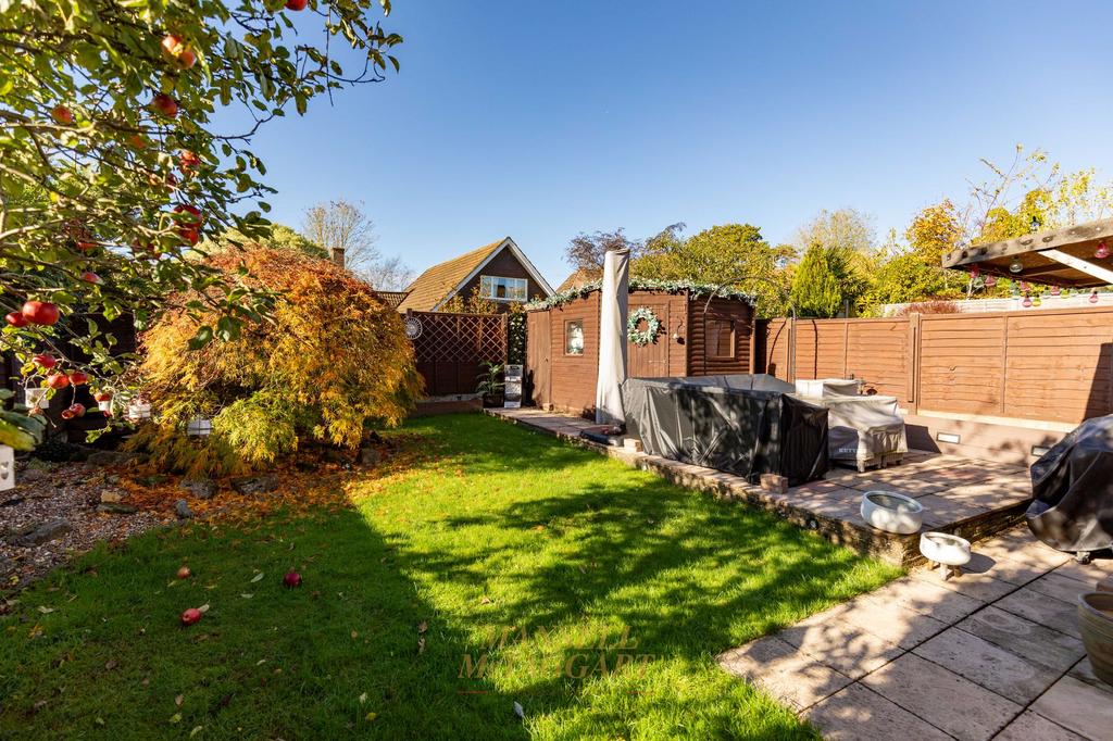 Outside, there is a driveway to the front providing off-road parking for at least two vehicles with the remainder of the front garden being laid to a levelled lawn. Gated side access leads to the secluded westerly facing rear garden, which is mainly laid to lawn with a patio area and a separate decking to allow plenty of space for outdoor dining. The whole is enclosed by wooden panel fencing.