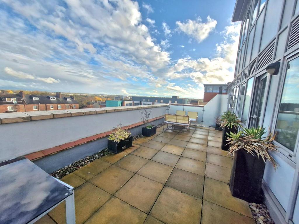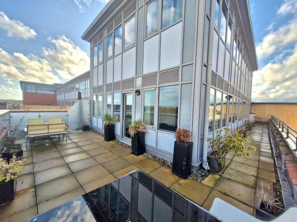 This fabulous two double bedroom Penthouse apartment is offered for sale in Northampton's popular Cultural Quarter and located in an iconic art deco building on Guildhall Road just a few doors away from the famous Royal and Derngate Theatre. The accommodation comprises main entrance with spiral stairway and lifts to all floors, central entrance hall with access to all accommodation, spacious open plan living/dining room and fitted kitchen with built-in appliances, two double bedrooms and a bathroom. There is a super wrap around terrace providing ample outdoor space with views over parts of the town centre. In addition there is one secure underground parking space. Further benefits include double glazing and gas central heating. (B/775/-)