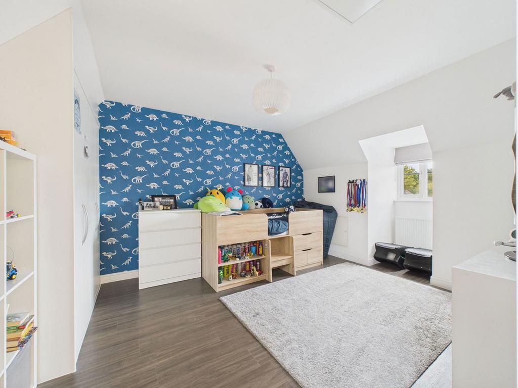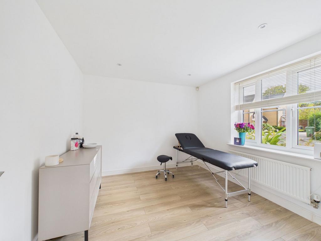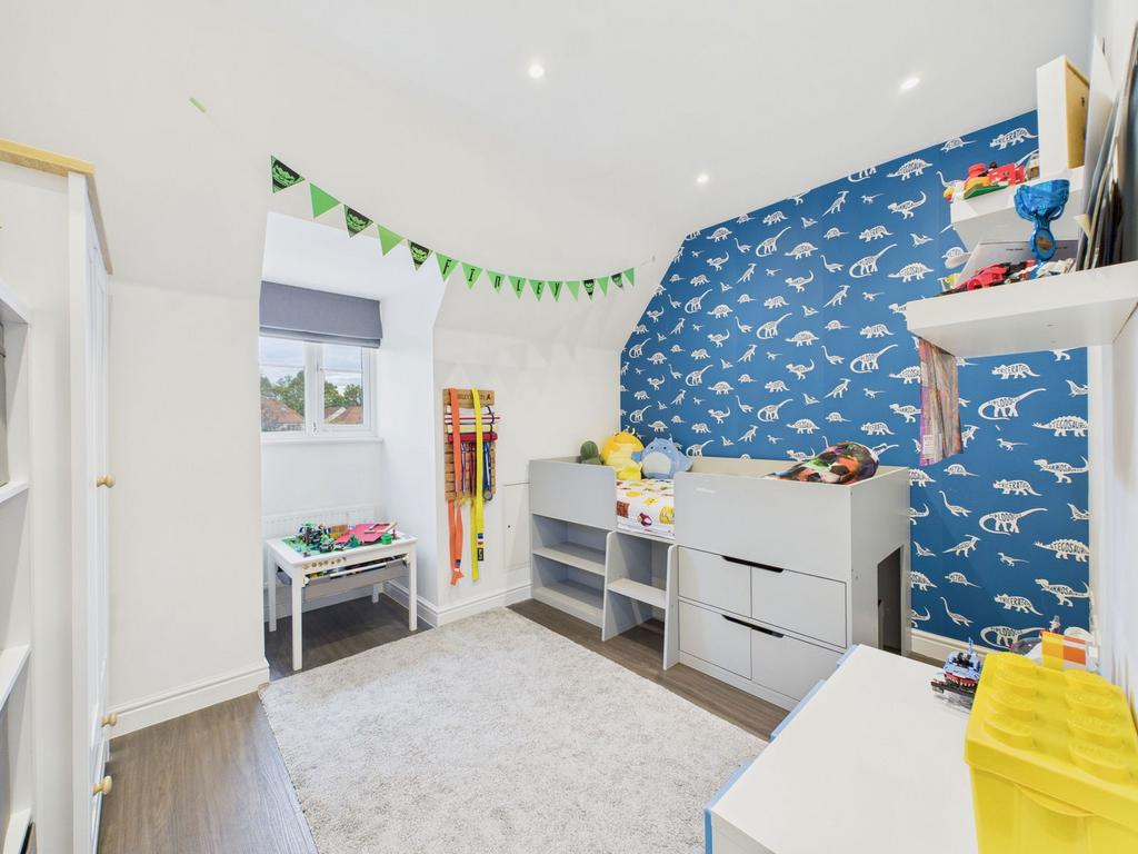 Upstairs, the principal suite brings calm and comfort with its private dressing area and modern en-suite. Four additional bedrooms — all well-sized — provide flexibility for family, guests, or a home office. They’re served by a stylish family bathroom and an additional shower room, ensuring everyone has their own space.