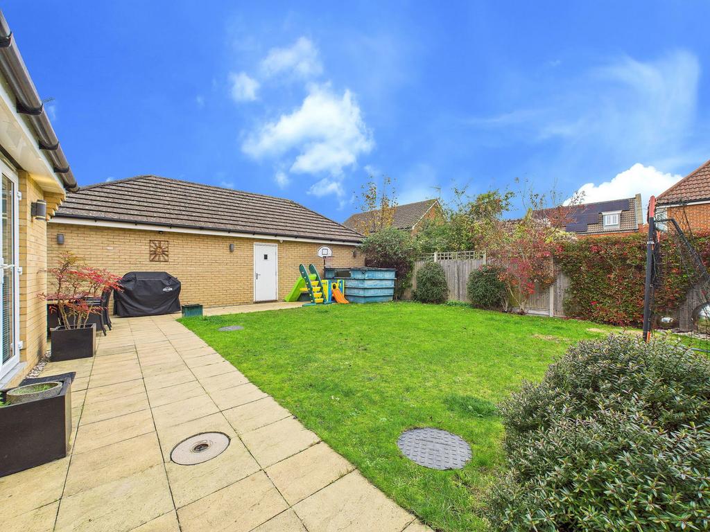 Outside, a neatly landscaped rear garden offers the perfect backdrop for peaceful mornings or summer dining. To the side, there’s ample driveway parking and a detached single garage for added convenience.