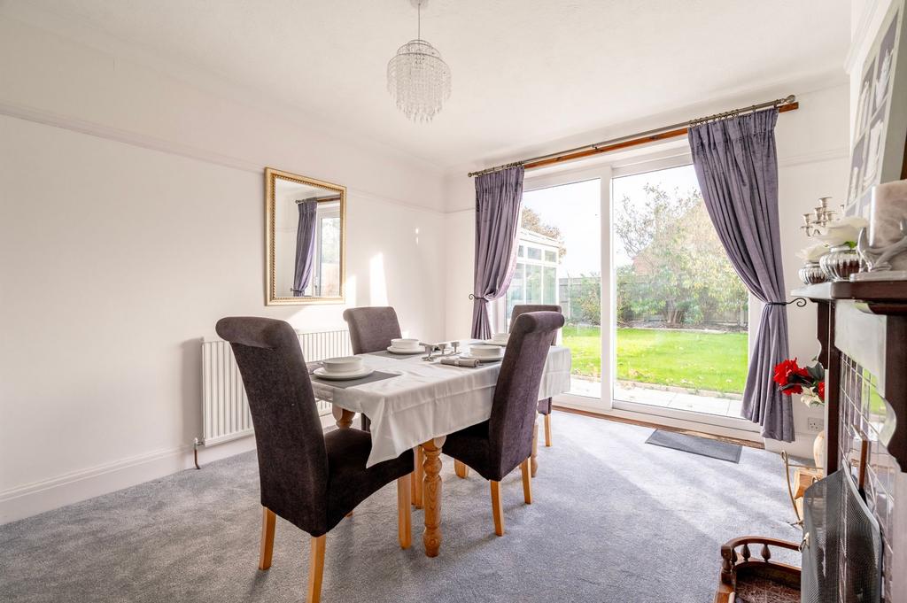- Elegant dining room with a secondary period fireplace, sliding doors leading directly to the garden, and flexible space for intimate family meals or sophisticated entertaining
