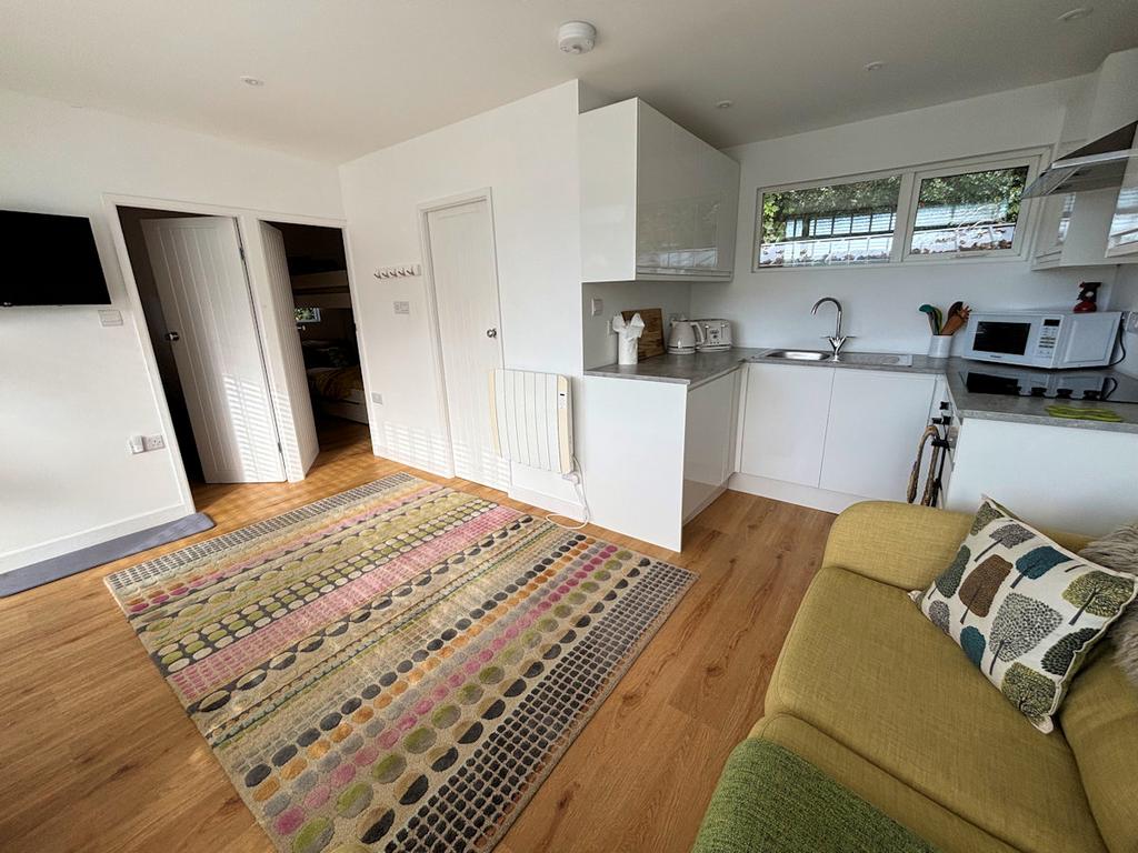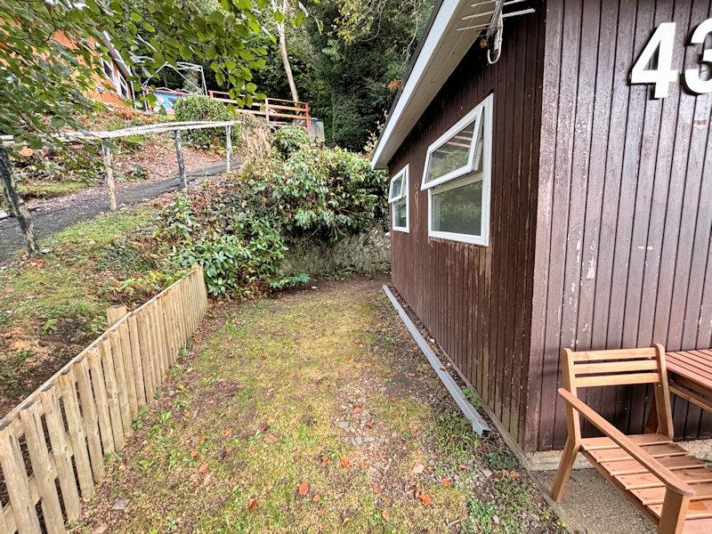 This semi detached chalet is situated on the Woodlands caravan and chalet park on the outskirts of the village of Bryncrug and within the famous Snowdonia National Park, an area of outstanding natural beauty. Situated in an elevated positionwith attractive views of the surrounding countryside and hills. With the benefit of space front and side which will accommodate a table and chairs and useful rear storage shed x 3 - the hot water cylinder is located here. Comprising open plan living area and kitchen, shower room and 2 bedrooms. The chalet was refurbished in 2020 to include new roof, internal walls insulated and plastered, new kitchen, shower room, flooring and installation of a pressurized hot water cylinder. Currently a holiday let through airbnb.