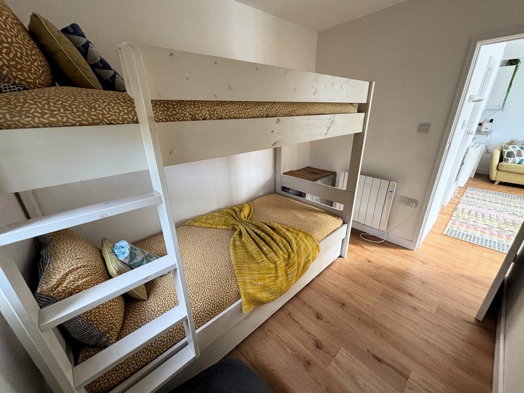 Upvc window to side, laminate floor, wall mounted heater.